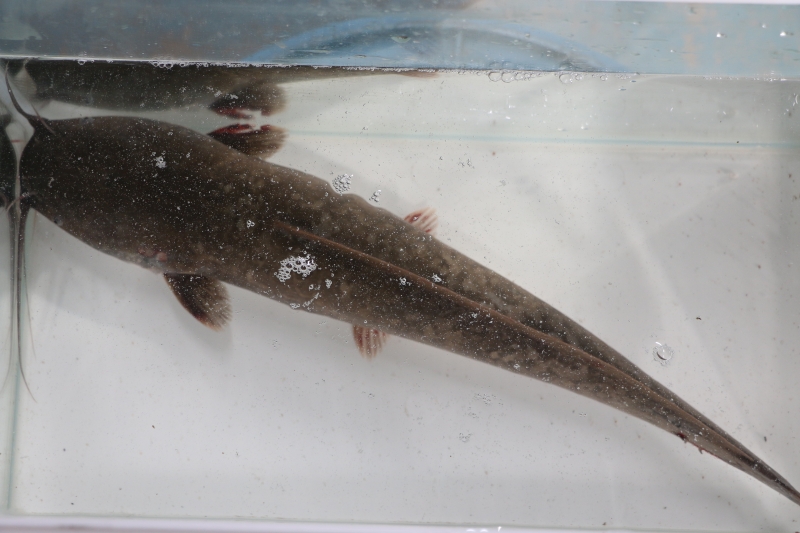 東南アジアに多く生息するヒレナマズを自社にて種苗した東広島市黒瀬産のナマズです。淡泊でクセのないナマズはどんな味付け・どんな料理にも適応する万能な白身魚です。素揚げ、フィッシュフライ、ムニエルなどの洋食としてもお勧めです。程よく脂ののった肉厚の身は、刺身にしても美味しいです。フグを連想させるモッチリコリっとした食感です。きれいな地下水で健康に育てていますので、薬品等は投与していません。