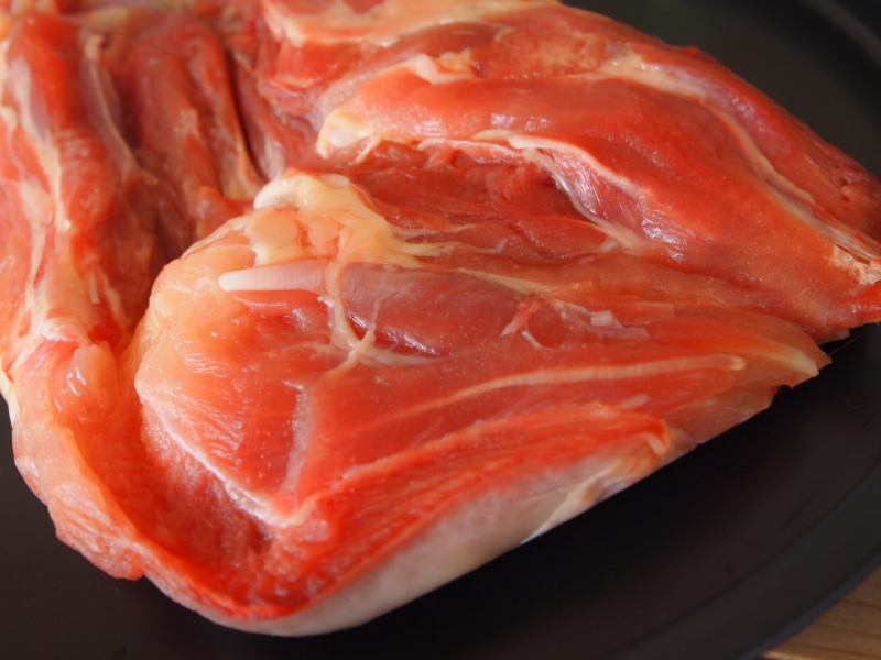 むね肉は、皮を剥いで5~10mm程度にスライスし、しゃぶしゃぶにしていただくと、より一層素材のおいしさを感じていただけます。