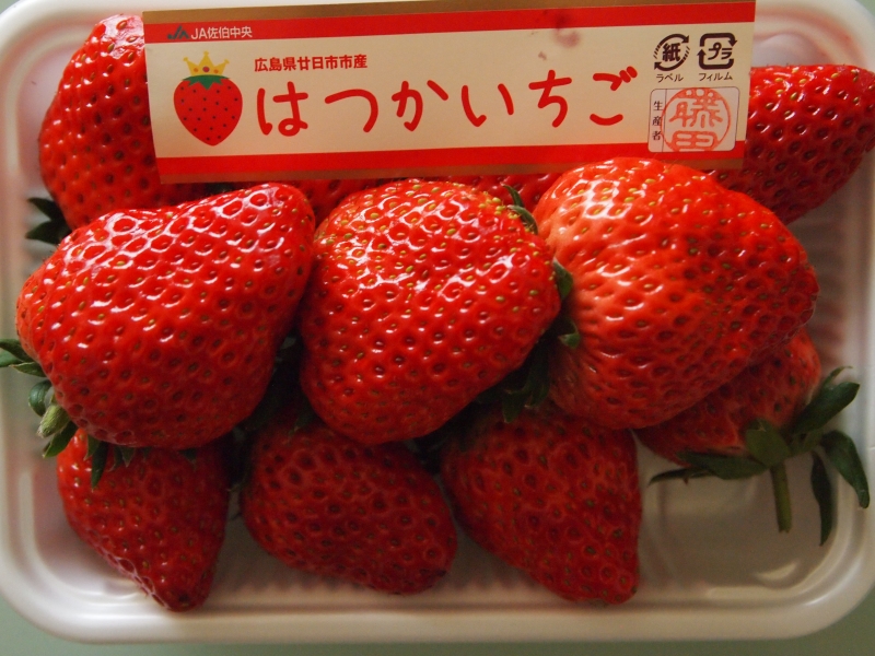 ネーミングは、廿日市市で栽培されたいちごなので「はつかいちご」として販売しています。
