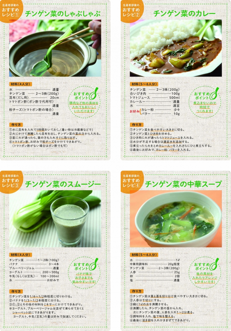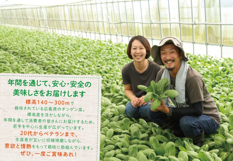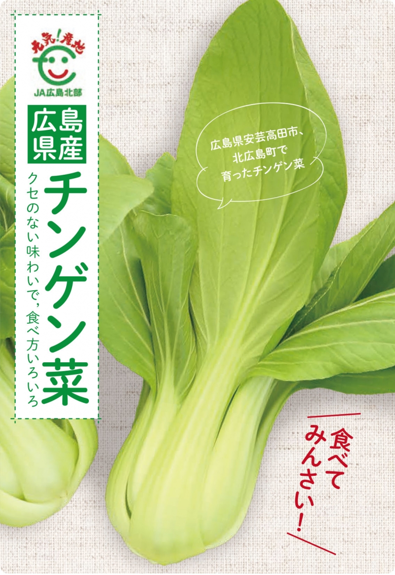 広島県産チンゲン菜のデジタルチラシです(産地・生産者・栽培に関する情報、生産者おすすめのレシピを掲載)