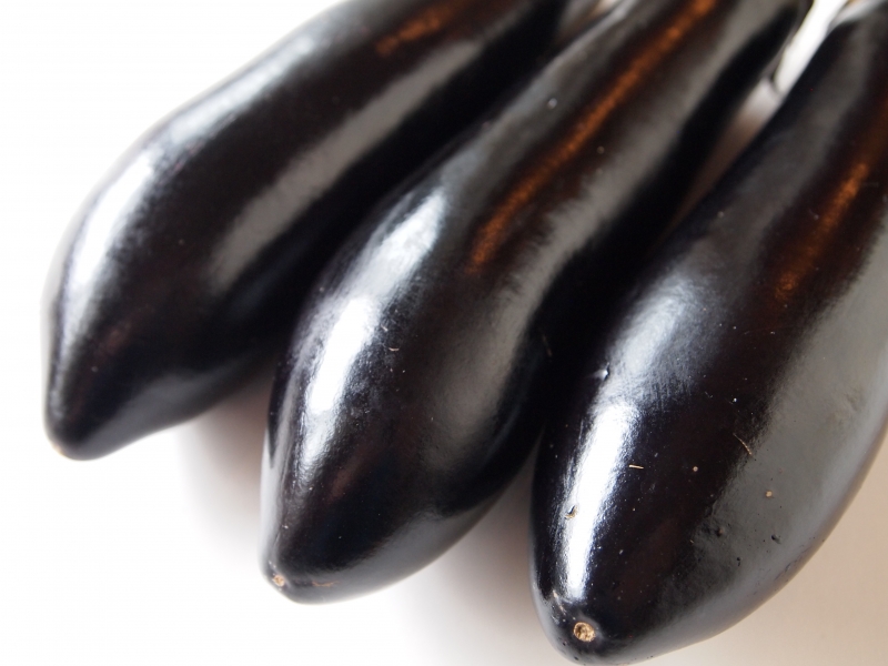 ・ツヤのある濃黒紫色で長卵形の中長ナスです。つくりやすく、夏の長い間なり続けます。