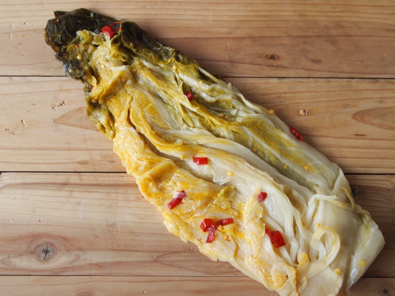漬物特有のにおいがする、辛くて酸っぱい昔ながらの漬物です。