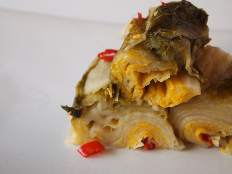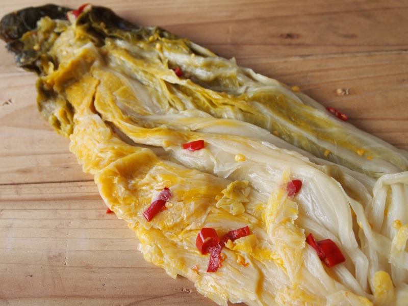 この漬物は、軽く水洗いをして食べます。そのままでは、辛くて食べられません。