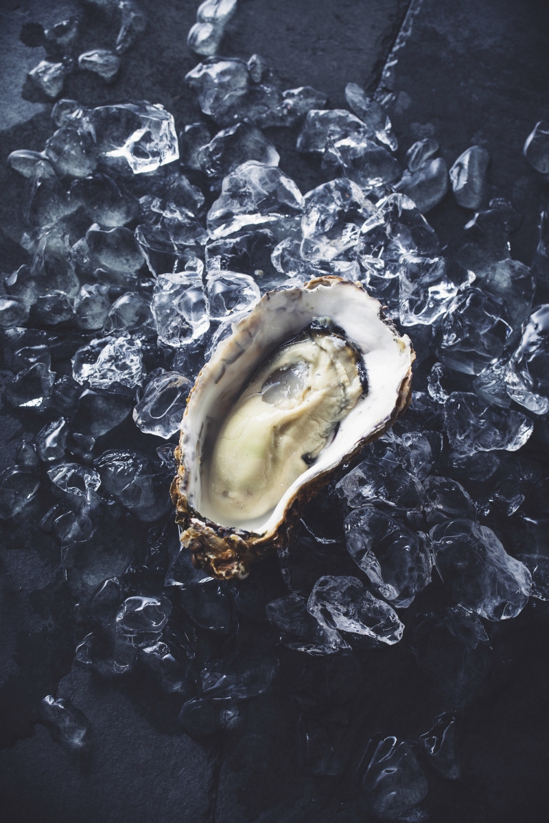 むき身の牡蠣は、海水氷の入ったバケツに入れられ一定の水温を保ったままです。
