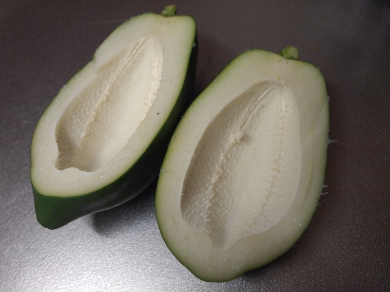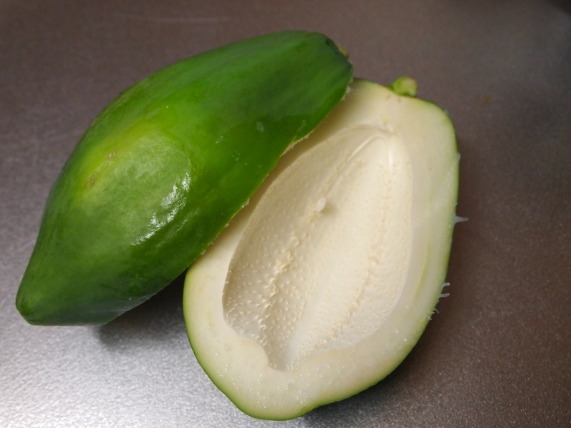 農薬や化学肥料を使わず育てた、料理用の青パパイヤです。