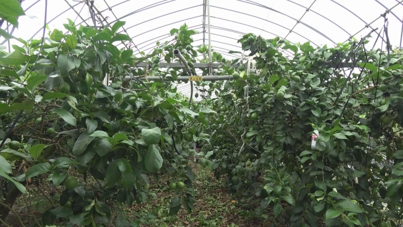 ハウスレモンは、管理が大変と聞く。剪定などの手間は露地と変わらないが、木の管理が難しく、生育時期によりハウス内の温度をこまめに調節しなければならない。その代わり、黒点病やかいよう病にもなりにくく、ほとんどロスが出ないのだという。