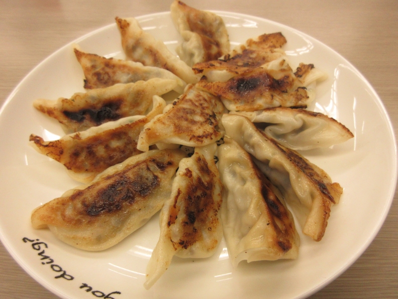 強火から中火にして3分程度焼き、水分が飛んで餃子が半透明に変わっていればOK