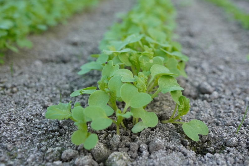 ①土耕栽培ならではの野菜の風味と香りと、②肉厚で食感が良く鮮度の保ちが良いこと、③飽きを感じさせない四季に応じたラインナップであることです。ルッコラ、カラシミズナ、カラシナ、クレソン、ビート、レッドオーク、トレビス、紫蘇、アマランサス、春菊、えごま、レッドケールの全種12品目(令和3年11月現在)の中から常時7種類以上を栽培しています。施設で栽培しているので一年を通して安定的に供給できるのも特徴です。