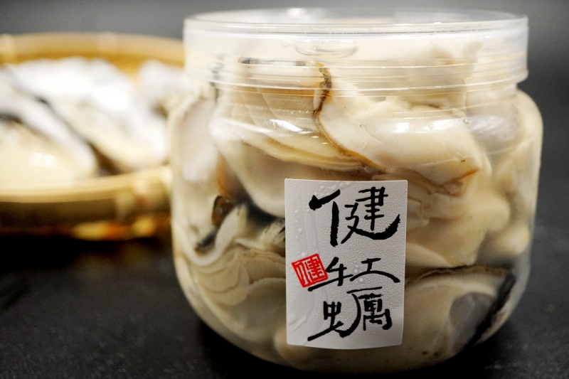 川崎健がしごきぬいて育てた“むっちり固太り”の健康優良児牡蠣、かんでおいしい「健牡蠣」(文筆家の佐藤隆介命名。健牡蠣のロゴも佐藤隆介による)。