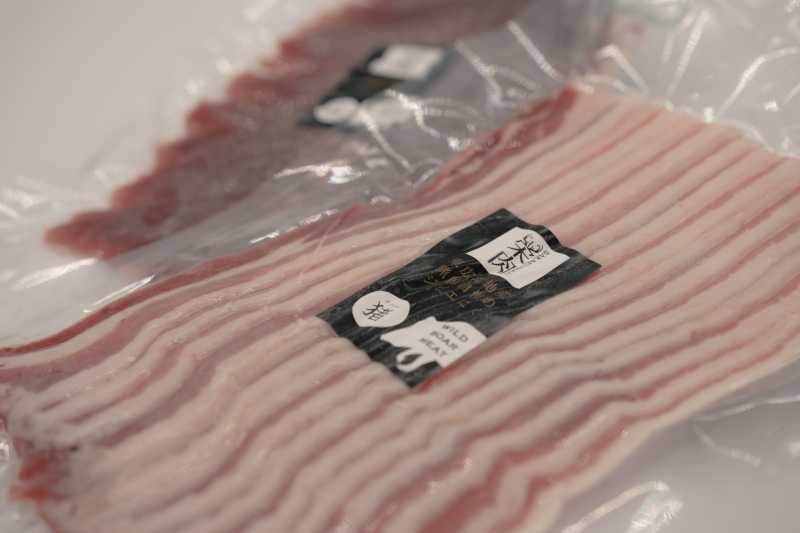 絞め(放血)から精肉までの処理を統一する事により、衛生的かつ肉質が安定した猪肉。