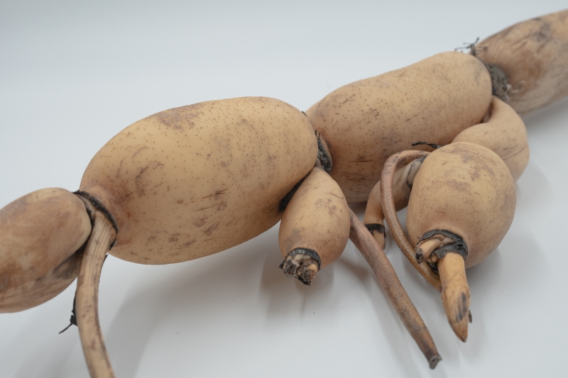 品種は“志那白花”(しなしろはな)と“福だるま(早生品種)”を栽培しています。圃場は,標高300m以上の中山間地域にあり、昼夜の寒暖差の大きい地域で栽培しています。作物が健全に育つ環境に配慮し、農薬・化学肥料はできる限り使わないようにしています。又、土壌微生物を活性化せるため有機肥料にこだわりFFC(土壌改良材)を使用しています。