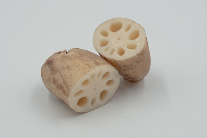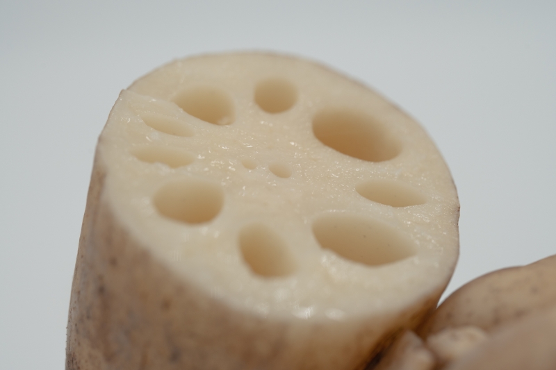 標高300m以上の中山間地域にあり,昼夜の寒暖差の大きい地域で栽培していることによりふっくらと肉厚で柔らかく粘りのあることが自慢です。表面の質感がなめらかで、無漂白でも色が白いことから土(泥)を塗らず洗いレンコンとして販売をしています。