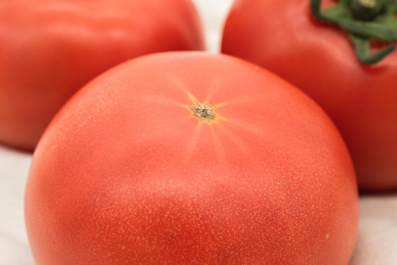 通常、夏秋トマトは赤く熟れる前の青色状態で収穫しますが、「高野王様トマト」は品種の特性を活かして赤熟もぎりを行います。夏の太陽をたくさん浴びて旨味と栄養が詰まったトマトになっています。