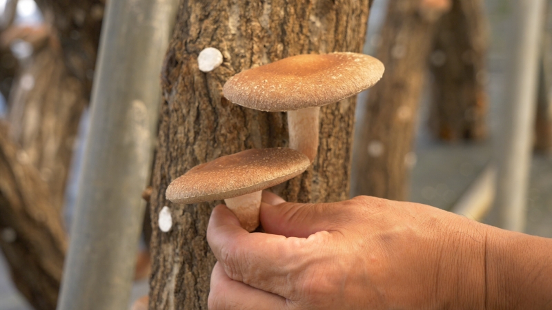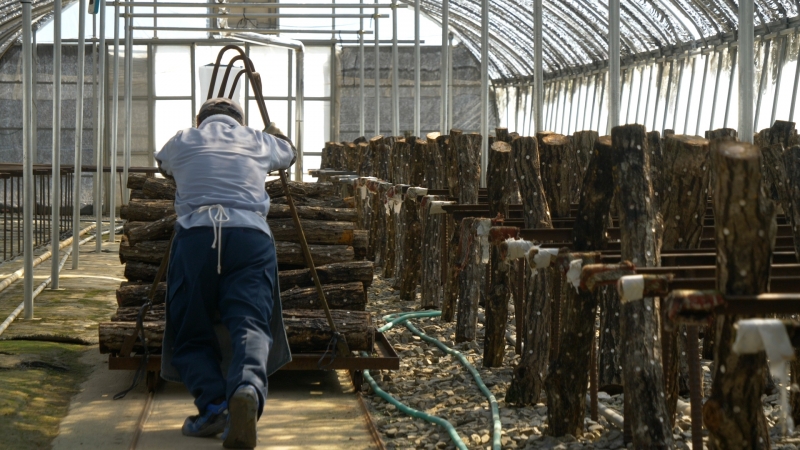 原木栽培は、原木の栄養分をしっかり、しいたけが吸収するので旨味が強いのが特徴。