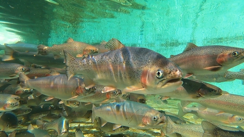 大型のドナルドソン系ニジマスを3年の歳月をかけて育てています。