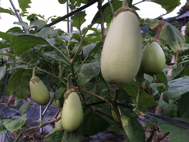こんなエピソードがあります。岡崎さんがみんなに内緒で、九州の種苗屋さんに白ナスの種があるというので取り寄せて栽培したそうです。できたものを食べてみると狩留家ナスとは全然別物だったようです。狩留家ナス独特のトロンとした食感がなかったようで,30年自家採種を繰り返している内に、狩留家の土地に馴染んだナスになっていったのでしょう。