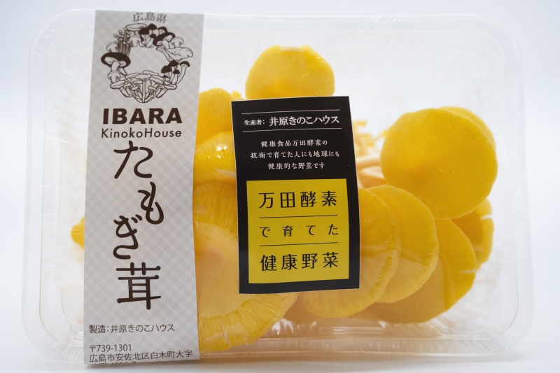 安佐北区白木町井原に位置するきのこハウスで栽培しています。人工栽培が難しいとされていた、たもぎ茸ですが現代では技術の発達によって、人工栽培が可能となりました。また、万田酵素(許可済)を散布しての栽培をしております。