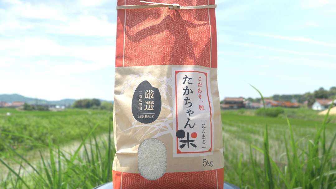 「打倒コシヒカリ」を目標に掲げ、独自ブランド米「たかちゃん米」を展開しています。代表の幼少期からのニックネーム「たかちゃん」をそのまま冠したこのお米は、