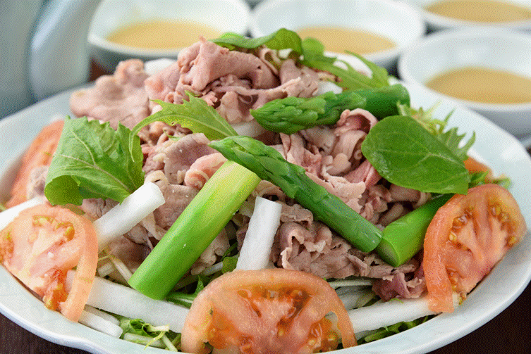 牛しゃぶ肉は約75℃〜80℃のお湯でしゃぶしゃぶにします。