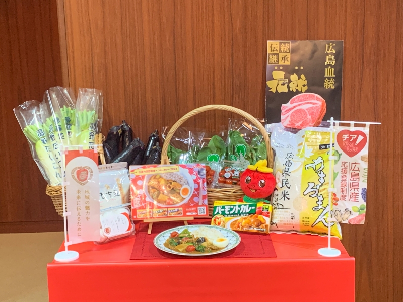 当日は使用する食材のうち、「チア!ひろしま」登録商品のチンゲン菜、長なす、ミニトマト、牛肉、米、もち麦を使用したカレーが振る舞われました。